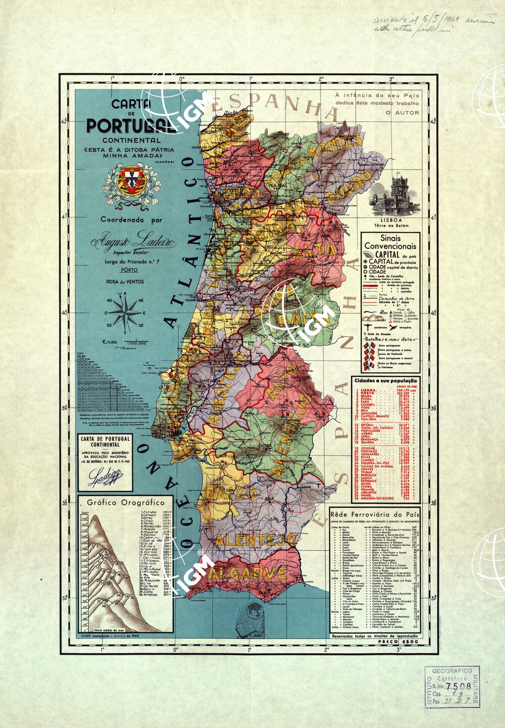 Augusto Laidero. Stampa in policroma a sfumo dimostrativa. Nella carta si trovano la rete ferroviaria e citta con il numero della popolazione.