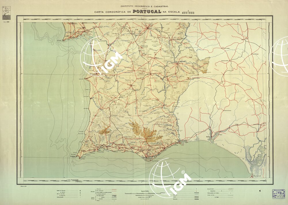 Instituto Geografico e Cadastral. Stampa in policroma a tinte ipsometriche.