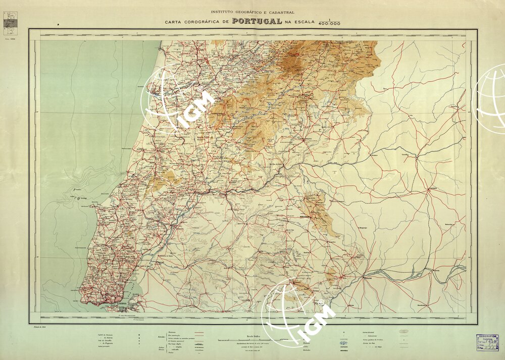 Instituto Geografico e Cadastral. Stampa in policroma a tinte ipsometriche.