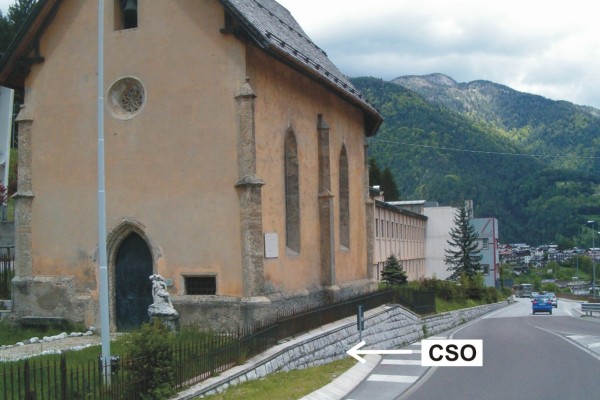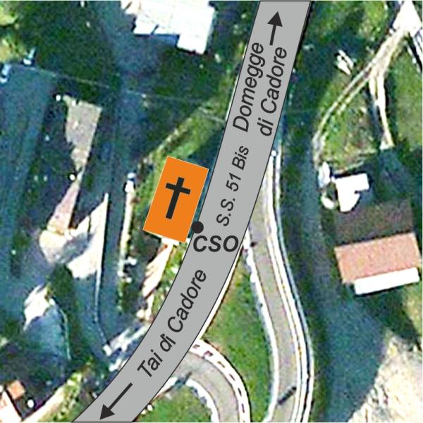 [{"simbolo_contrassegno":"B1","materializzazione":"(CSO) – Bullone infisso sul muro di sostegno di una chiesetta posta sul lato destro della S.S. 51 bis in direzione Tai di Cadore."}]