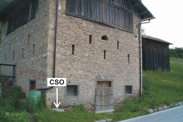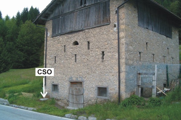 [{"simbolo_contrassegno":"P5","materializzazione":"(CSO) – Pozzetto di IV categoria rialzato con tubo in pvc e protetto da tappo in ghisa posto alla base della facciata del deposito, spigolo di sinistra."}]