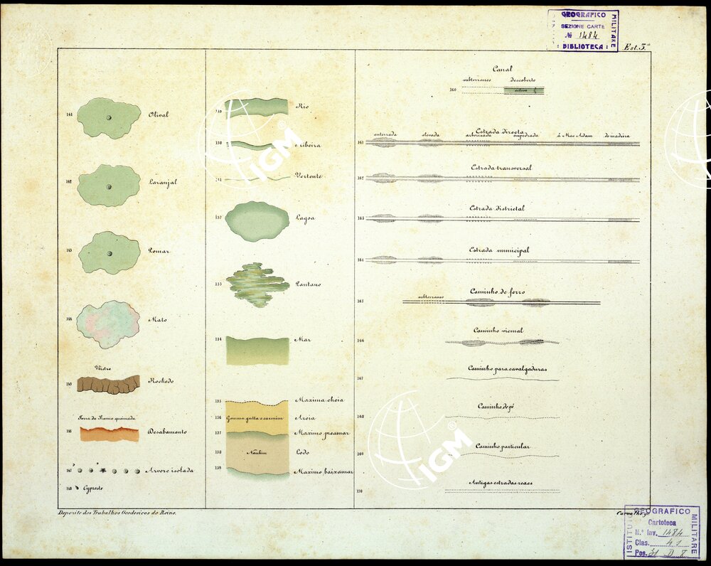 Deposito dos Trabalhos Geodesicos do reino. Carta in policroma.