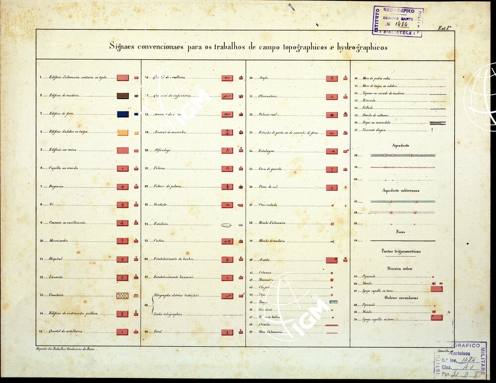 SIGNAES CONVENCIONAES ADPTADOS PARA OS TRABALHOS TOPOGRAPHICO ET HIDROGRAPHICOS EXECUTADOS EM PORTUGAL (Est 1a)