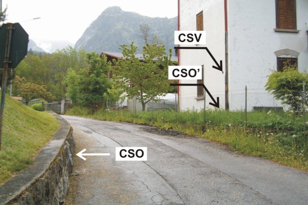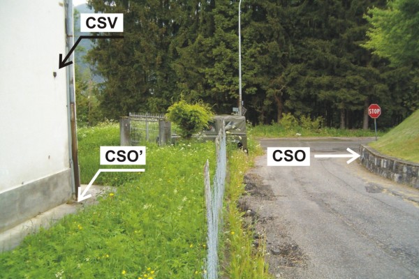 [{"simbolo_contrassegno":"B1","materializzazione":"(CSO) – Bullone infisso nel muro in sassi all'inizio di strada Longiarin, lato destro direzione Statale, davanti al cancello d'ingresso dell'edificio dove sono ubicati gli altri contrassegni."},{"simbolo_contrassegno":"P3","materializzazione":"CSO') – Chiusino in ghisa di III categoria posto alla base della fiancata sinistra del'edificio, spigolo di destra."},{"simbolo_contrassegno":"V1","materializzazione":"(CSV) – Mensola infissa sulla fiancata del'edificio."}]