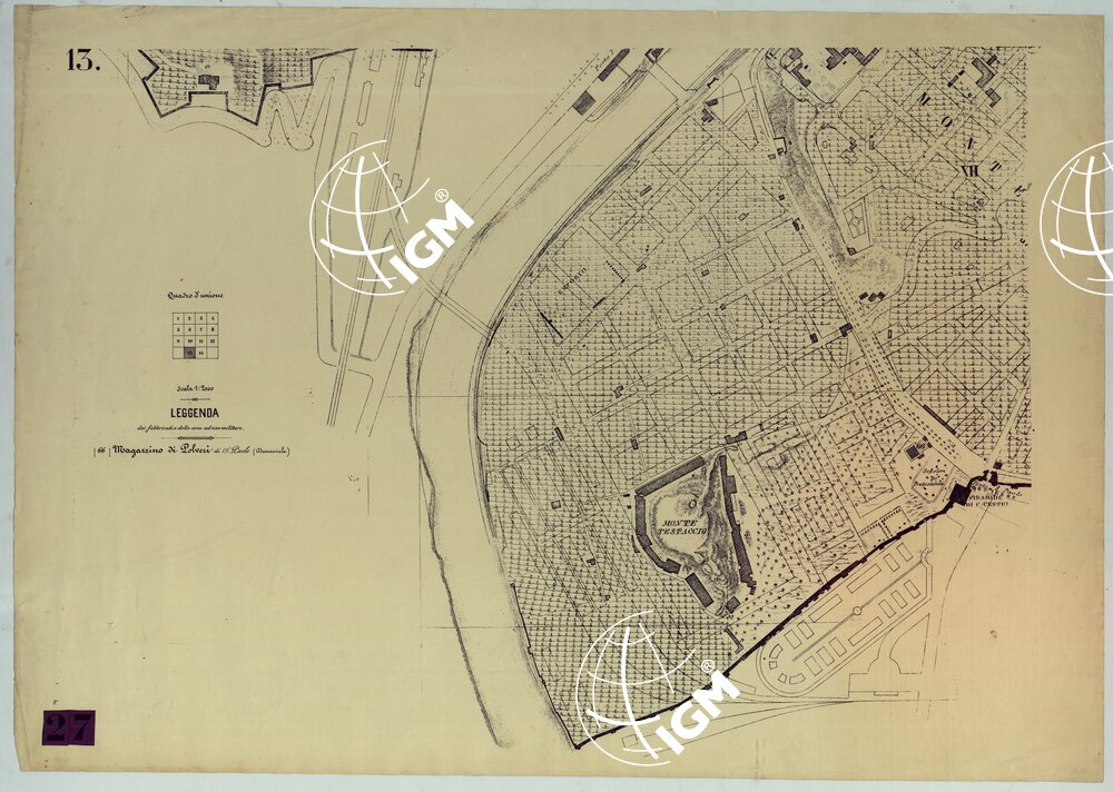 ROMA, CARTA DEI FABBRICATI E DELLE AREE AD USO MILITARE – FOGLIO 13.
