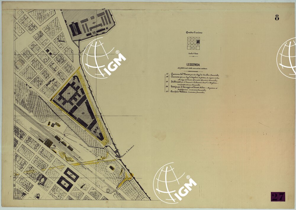 ROMA, CARTA DEI FABBRICATI E DELLE AREE AD USO MILITARE – FOGLIO 8.