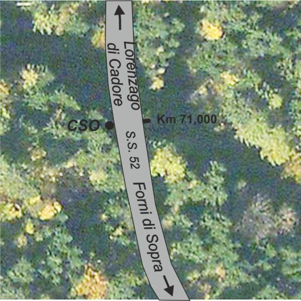 [{"simbolo_contrassegno":"B1","materializzazione":"(CSO) – Bullone infisso su un muretto, lato a valle, alla sinistra della carreggiata andando verso Lorenzago di Cadore, all'altezza del km 71."}]
