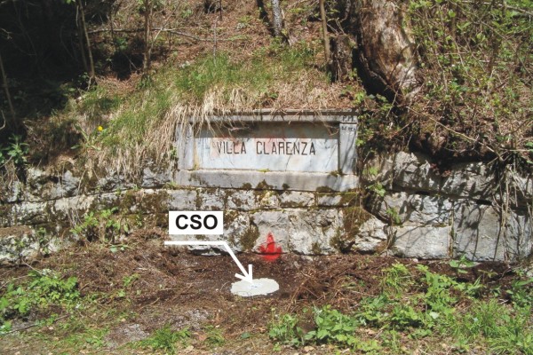 | Contrassegni | [{"simbolo_contrassegno":"P5","materializzazione":"(CSO) – Pozzetto di IV categoria rialzato con tubo in pvc e protetto da tappo in ghisa posto alla base del muro di sostegno,al centro della lapide, all'inizio della strada d'accesso a Villa Clarenza."}] |