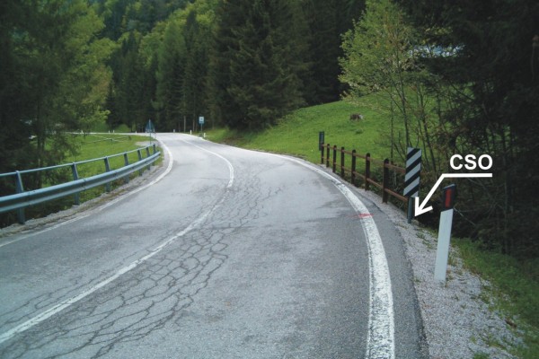 [{"simbolo_contrassegno":"B1","materializzazione":"(CSO) – Bullone infisso sulla spalletta destra di un ponte all'altezza del Km 67,950, andando verso Lorenzago di Cadore."}]