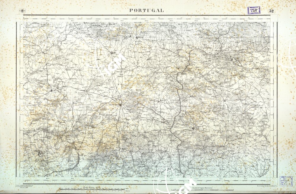 La carta si compone di 37 fogli; corrispondenti ad un’estensione di circa 4000 Kmq. Il rilievo del terreno per la sua compilazione fu dapprima eseguito alla scala di 1:100.000; in seguito per le regioni più popolate fu fatto al 50 mila. E’stampata in nero da incisione su pietra. La configurazione del suolo era dapprima rappresentata col solo tratteggio, in seguito fu adottato per tutti i fogli il sistema delle curve di livello con equidistanza di 25 metri, sussidiato da quote altimetriche. le curve sono molto sottili, è difficile quindi afferrare la precisa configurazione del terreno. Il reticolato geografico è formato sia con archi di circonferenza determinanti la longitudine e la latitudine in gradazione sessagesimale a partire dal meridiano di Lisbona, sia con linee rette determinanti una rete di quadrilateri aventi un’ampiezza di 5 Km. nel senso della latitudine e di 8 Km. in quello della longitudine. La scala oltrechè nel rapporto metrico è riprodotta anche in leghe.