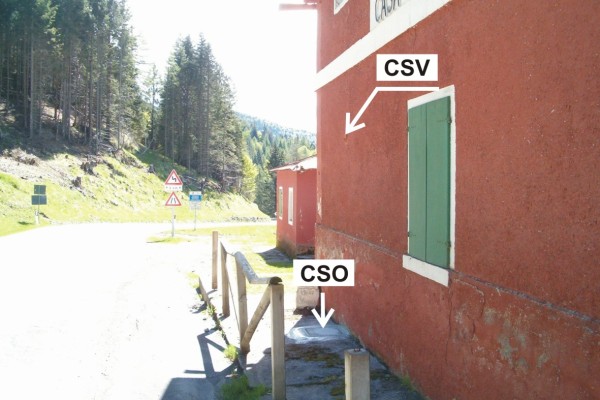 | Contrassegni | [{"simbolo_contrassegno":"P3","materializzazione":"(CSO) – Chiusino in ghisa di III categoria rialzato con coperchio in cemento e protetto da chiusino in cemento, posto alla base del fianco verso la strada, spigolo di sinistra."},{"simbolo_contrassegno":"V1","materializzazione":"(CSV) – Mensola infissa sul fianco verso la strada, spigolo di sinistra."}] |
