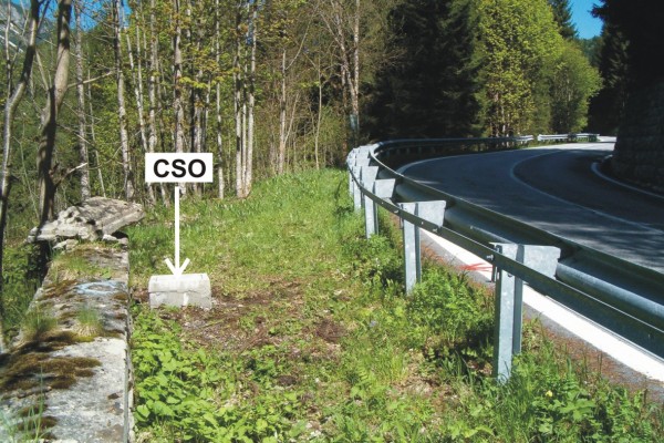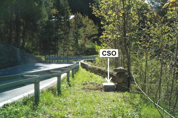 | Contrassegni | [{"simbolo_contrassegno":"P3","materializzazione":"(CSO) – Chiusino in ghisa di III categoria rialzato con pozzetto in cemento e protetto con coperchio anonimo posto alla base del parapetto a valle, estremit\u00e0 di destra."}] |
