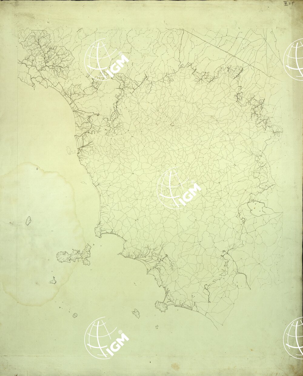 La riduzione è stata eseguita con eccellente Pantografo, sotto gli occhi e sull’originale inedito dell’autore e con l’appoggio di quasi tutti i di lui punti trigonometrici, che si è avuto cura di collocare con diligenza al rispettivo loro luogo prima di dar mano al lavoro. La carta preledato G. Inghirami è nella proporzione di 1:200 mila ed è stata costruita sopra una rete di 2505 triangoli di primo ordine; attestati a 767 punti trigonometrici. Le posizioni Geografiche sono dipendenti da quelle dell’osservatorio delle Scuole Pie di Firenze, a cui le più recenti osservazioni danno 43°46’41” Lat. Boreale e 8°45’0″ Long. ceduta dalla Reale Specola di Parigi. L’orientamento è stato determinato con molte osservazioni D’Azimuth sui punti trigonometrici visibili del predetto osservatorio. La proiezione è quella Bonne; il meridiano medio cade sugli 8°59’50”, e il parallelo medio sui 43°0’0″.