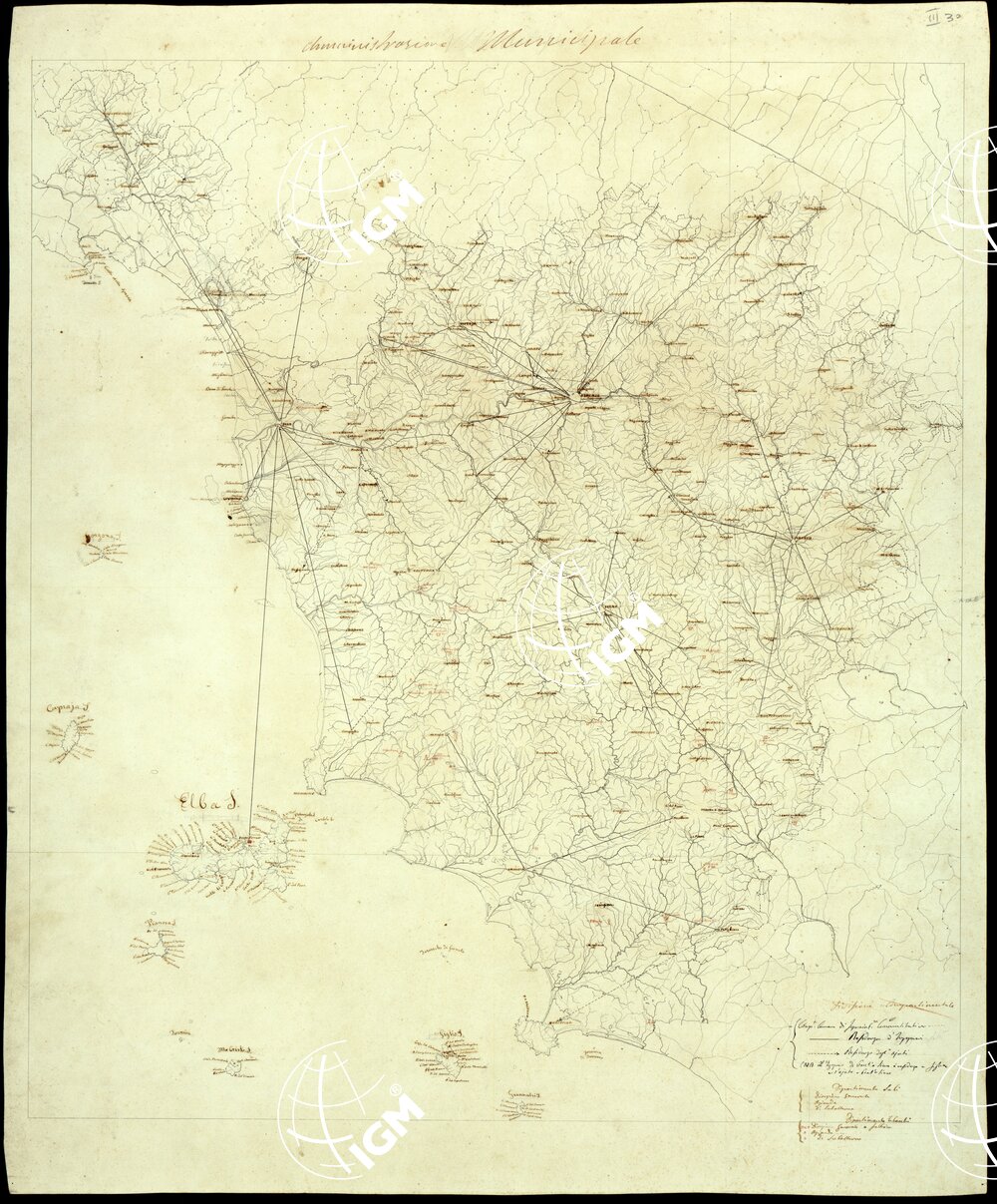 Questa carta nella proporzione al vero di 1:400 mila è una riduzione di quella che L’Egregio Astronomo G. Inghirami delle Scuole Pie ha recentemente pubblicata col titolo di CARTA GEOMETRICA DELLA TOSCANA.