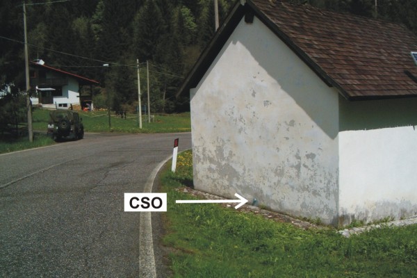| Contrassegni | [{"simbolo_contrassegno":"B1","materializzazione":"(CSO) – Bullone infisso al centro della facciata posteriore della cappella, lato strada."}] |