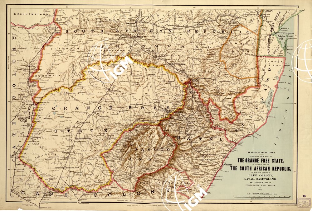 UNIONE SUD-AFRICA – STANFORD NEW MAP OF THE ORANGE FREE STATE, THE SOUTHERN PART OF THE SOUTH AFRICAN REPUBLIC