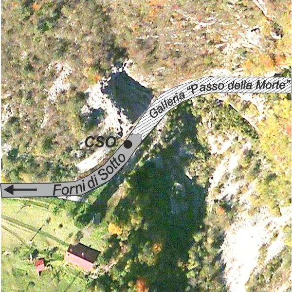 [{"simbolo_contrassegno":"B1","materializzazione":"(CSO) – Bullone infisso sul muro di sostegno, allo sbocco della galleria, andando verso Forni di Sotto, a destra."}]