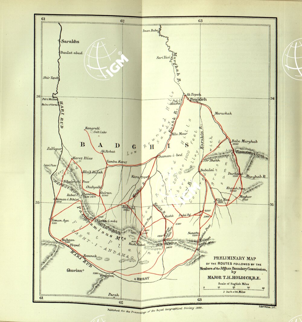 PRELIMINARI MAP OF THE ROUTES FOLLOWED BY THE MEMBERS OF THE AFGHAN BOUNDARY COMMISSION.