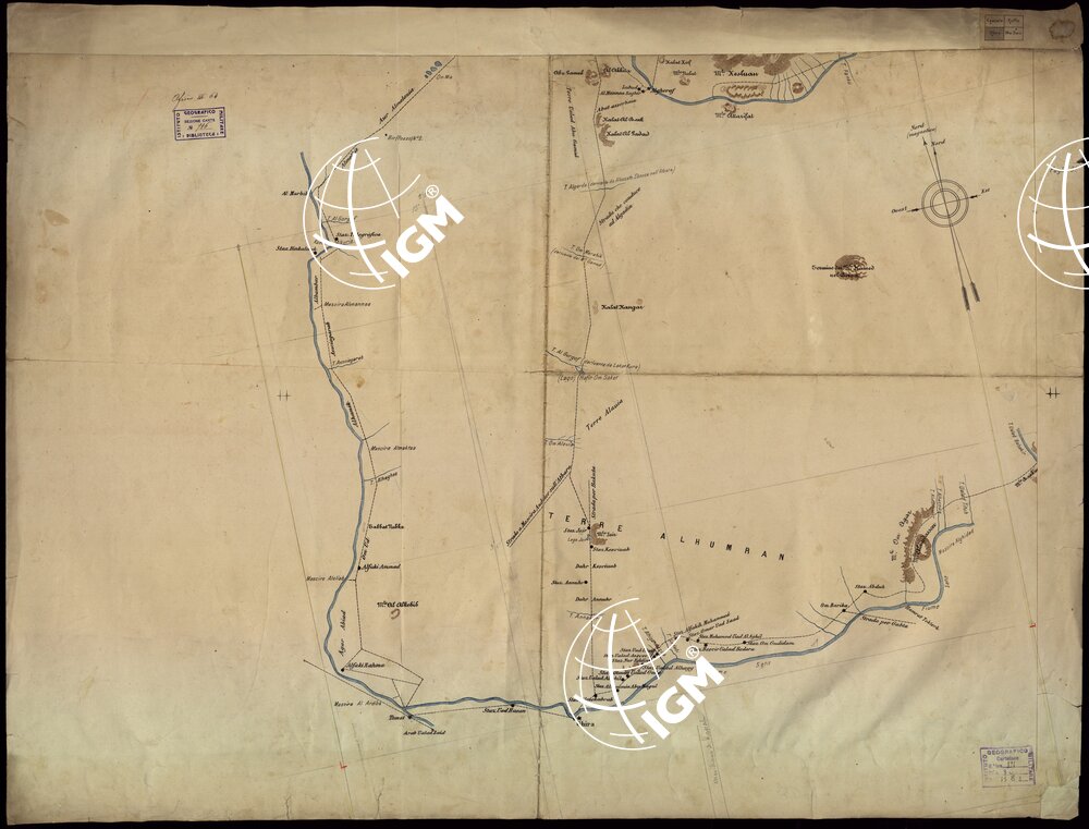 Eseguita da ufficiali dello Stato Maggiore Egiziano d’ordine di Rascid Pascià riprodotta in italiano per cura del Corpo di Stato Maggiore 1° Reparto (1888). La carta consta di quattro fogli a stampa policroma. L’orografia rappresentata dimostrativamente con curve di livello e tratteggio, l’idrografia in azzurro, le scritture, strade e centri abitati in nero. Riproduzione in fotolitografia. La carta si riattacca a sud con la carta delle regioni Ghedaref, Daka e Gallabat (ved. N°797 d’inventario) alla stessa scala a e est con la carta delle regioni fra Massaua e il Barka.