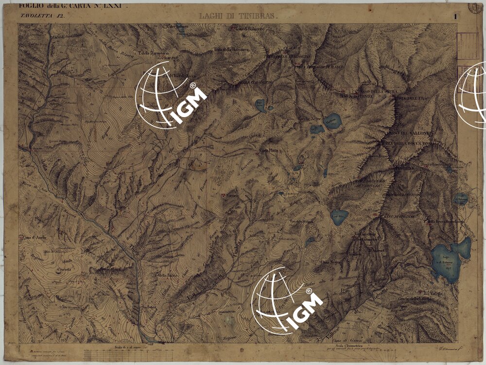 Rilievo regolare in 99 tavolette (minute di campagna) del territorio della Contea di Nizza. Il rilievo è dimostrato a curve orizzontali, tracciate all’equidistanza di 10 metri. Gli operatori furono ufficiali di armi diverse, probabilmente allievi della Scuola di S. M. : Avet, Albert, Borson, Basso, Bergalli, Costanze, Cordon, Ceva, Colli, Carderina, Cordero, Coda, Di Pralormo, Dal Pozzo, De Fornari, De Candia, D’Angennes, Escoffier, Federici, Falicon, Govone, La Grange, La Fleche, Muletti, Marazzano, Mazè, Morozzo, Mariani, Pictet, Ponzani, Piola Caselle, Righini, Rinaudo, Ricci, S. Andrea, Somis, Villamarina.