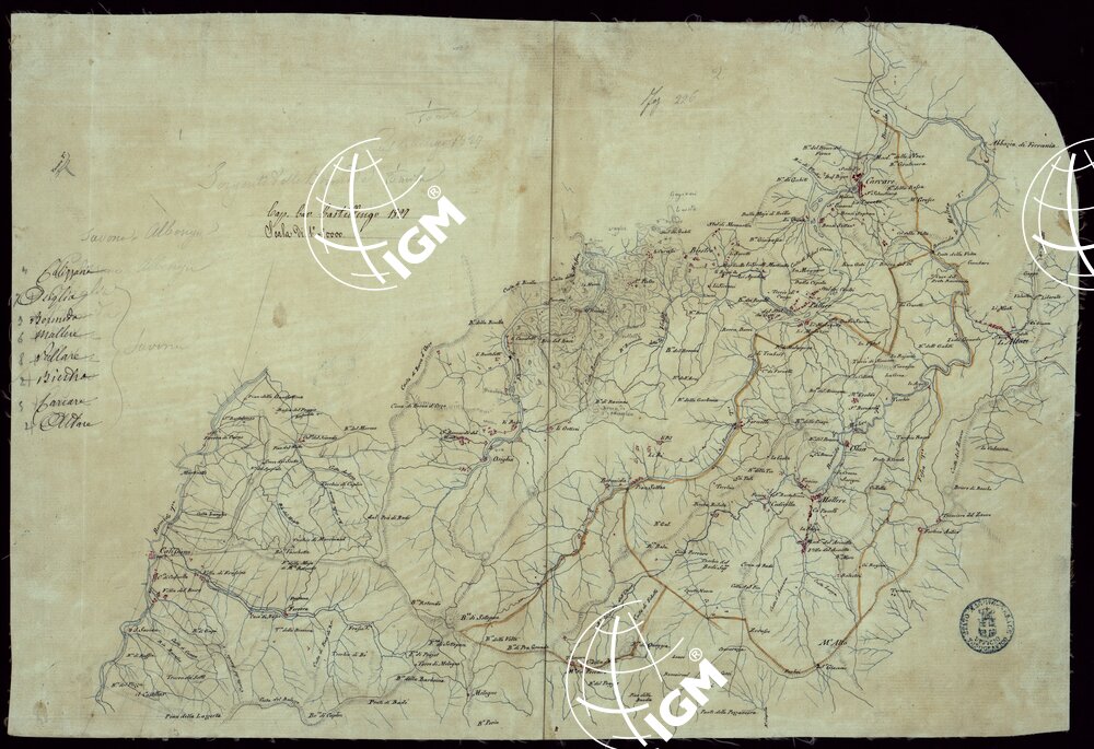 Quattro minute di campagna, delle ricognizioni eseguite nel 1827 dal Cap. Cav. Castellengo nel territorio della Provincia di Savona. Quattro fogli montati su tela.