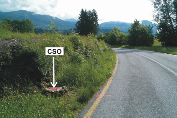 | Contrassegni | [{"simbolo_contrassegno":"P5","materializzazione":"(CSO) – Pozzetto di IV categoria rialzato con chiusino in cemento anonimo, posto alla base della testa del muretto a secco, direzione Socchieve, che si trova lungo la pista ciclabile."}] |