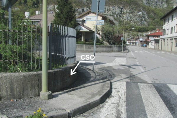 [{"simbolo_contrassegno":"B1","materializzazione":"(CSO) – Bullone infisso nel muretto di recinzione della ditta \"Elettrocasa\" posta al civico 16 e all'incrocio tra Via Marconi con Via Boscut."}]