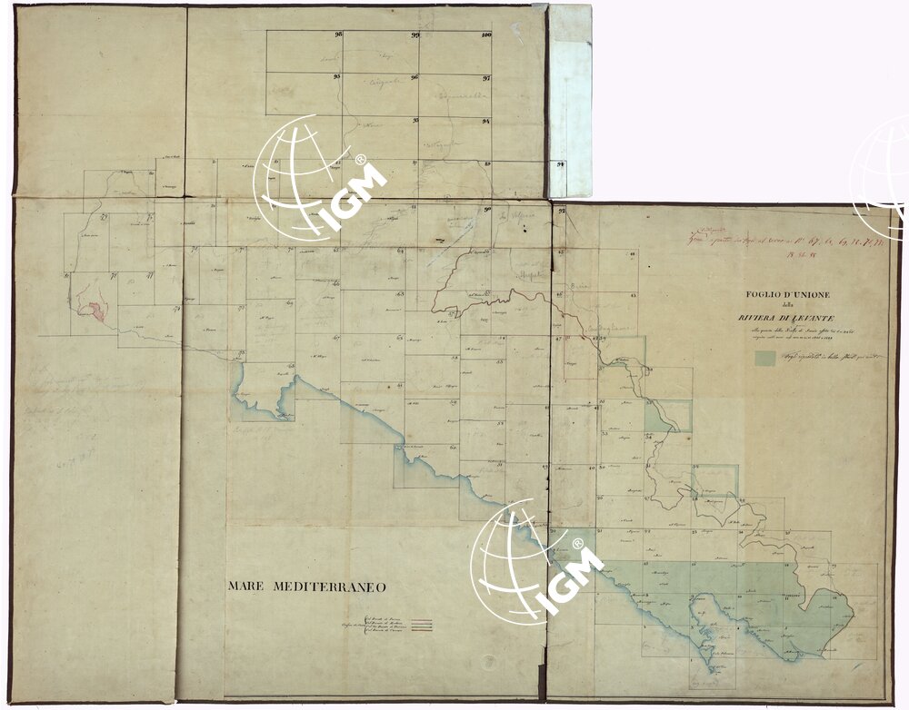 RIVIERA DI LEVANTE ALLA QUARTA DELLA SCALA DI SAVOIA OSSIA DI 1 A 9.450 ESEGUITA NEGLI ANNI 1816. 1822. 23. 24. 25. 1826 e 1827 – QUADRO D'UNIONE.