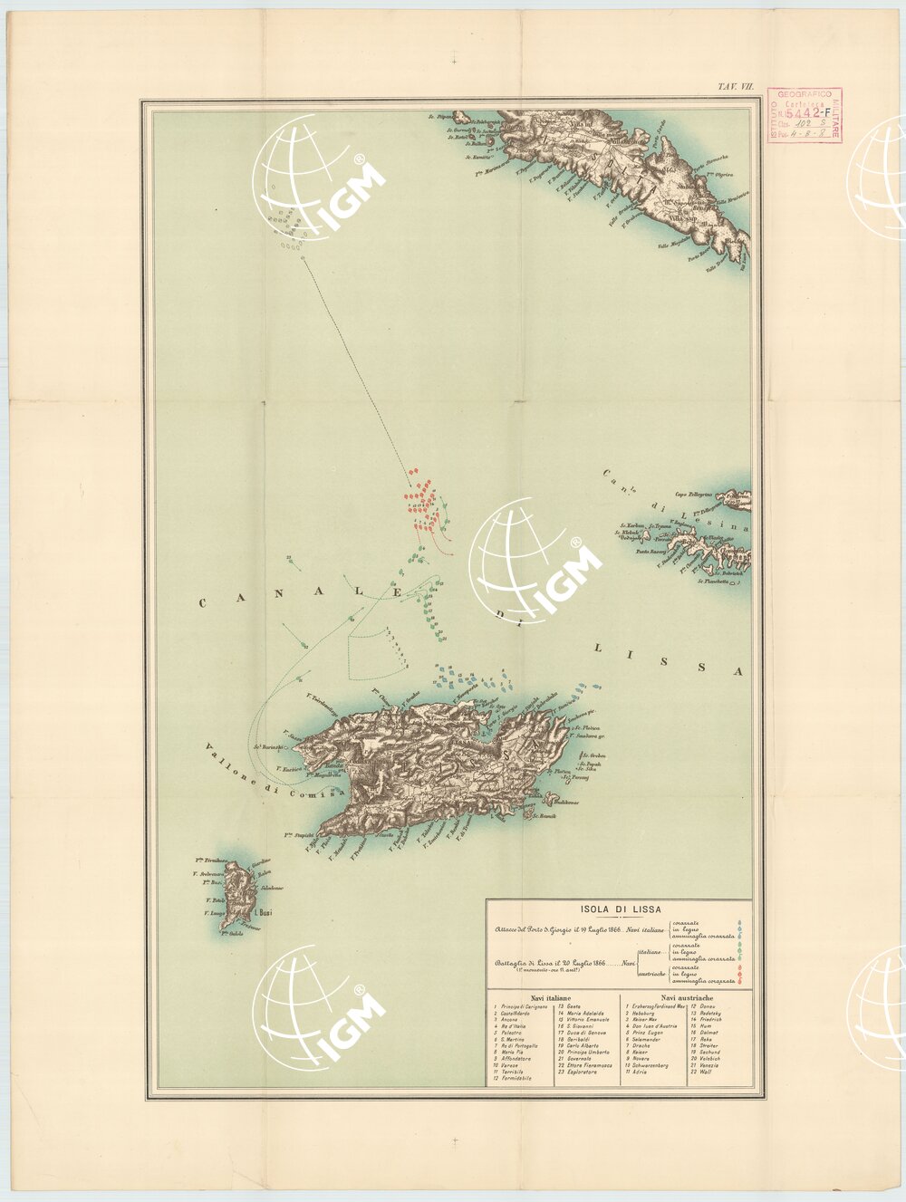 Rappresentazione orografica a tratteggio. Tipologia policroma. Grafia italiana.