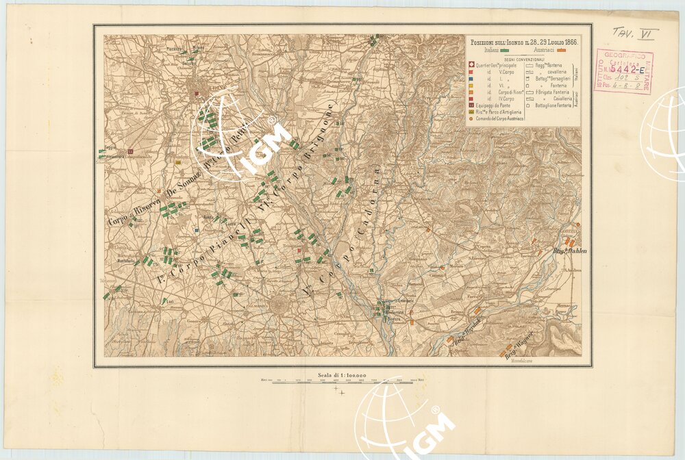 Rappresentazione orografica a tratteggio. Tipologia policroma. Grafia italiana.