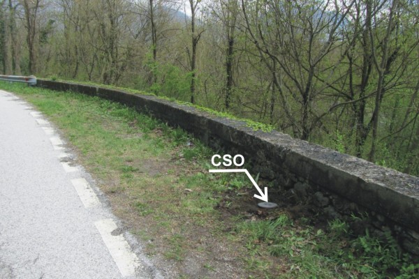 [{"simbolo_contrassegno":"P5","materializzazione":"(CSO) – Pozzetto di IV Categoria rialzato con tubo in pvc e protetto da tappo in ghisa posto alla base di parapetto dopo il Km 6,800, a sinistra in direzione Villa Santina, in uno slargo della strada."}]