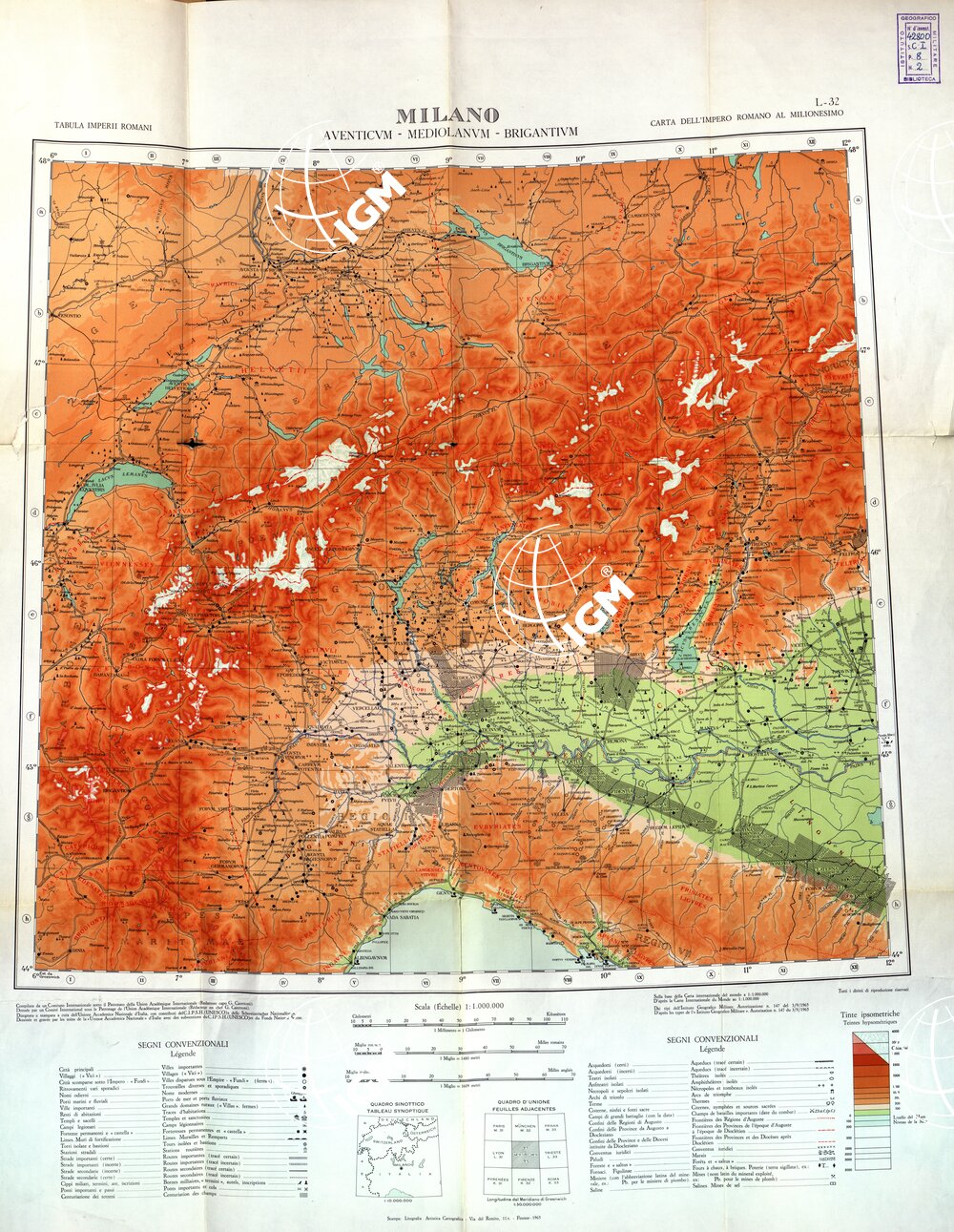 Autore Comitato Internazionale sotto il Patronato della Union Accademy International. Editore Litografia Artistica Cartografica -Firenze.Rappresentazione orografica a tinte ipsometriche.