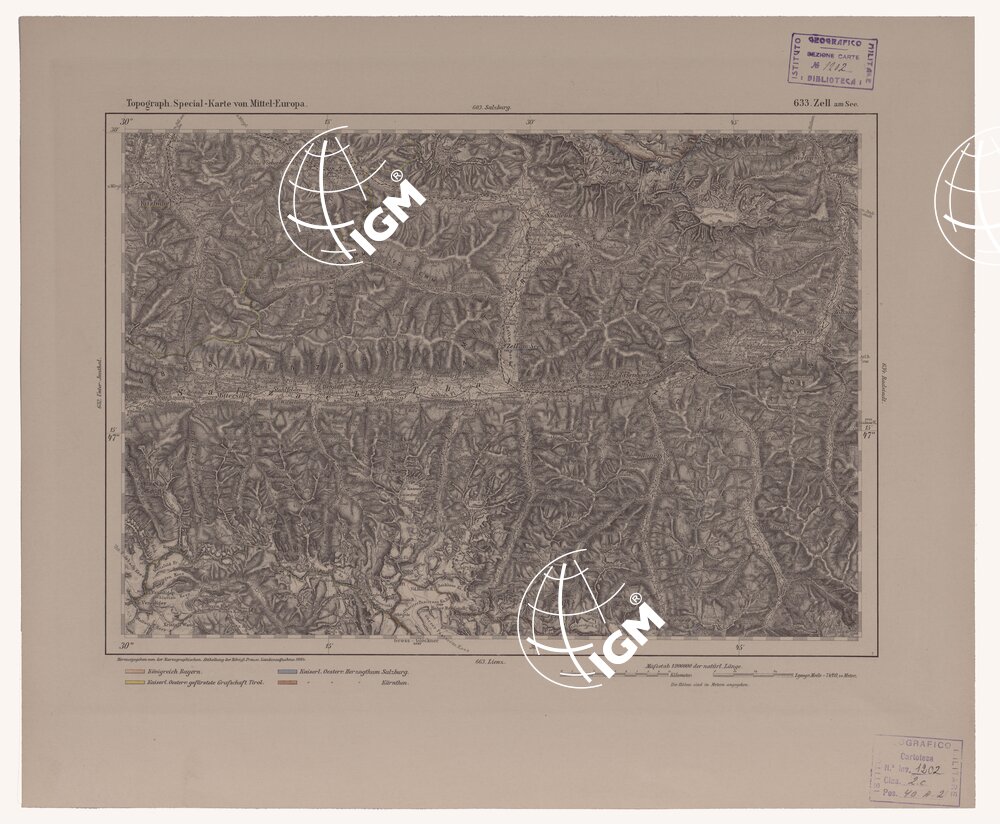 Autore Reymann, luogo di edizione Berlino. Rappresentazione orografica a tratteggio. Tipo in nero colorato a mano.