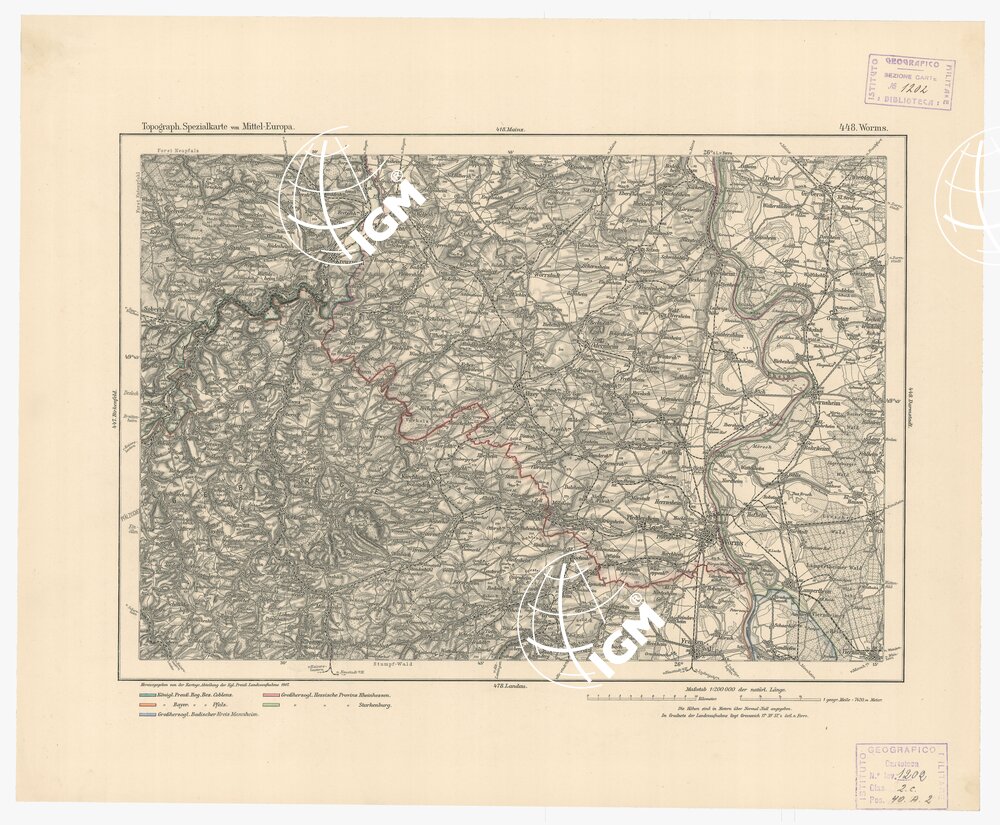 Autore Reymann, luogo di edizione Berlino. Rappresentazione orografica a tratteggio. Tipo in nero colorato a mano.