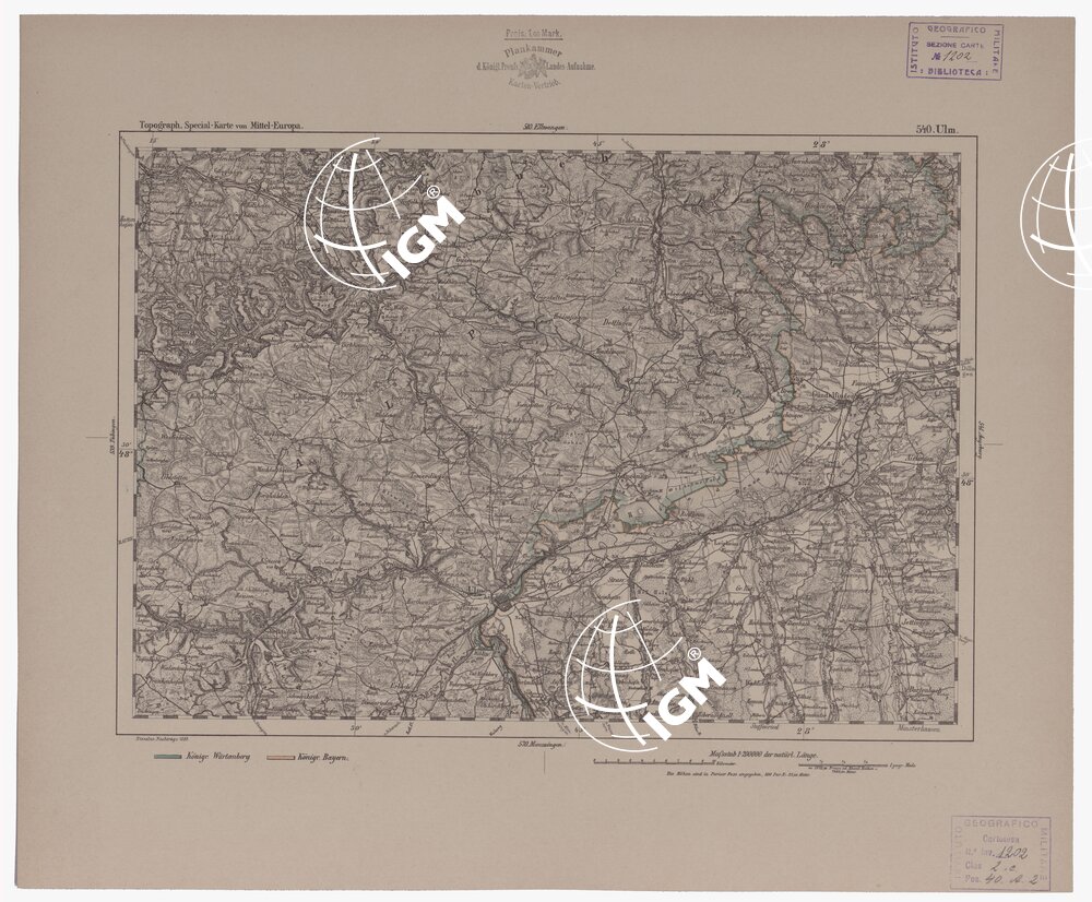 Autore Reymann, luogo di edizione Berlino. Rappresentazione orografica a tratteggio. Tipo in nero colorato a mano.