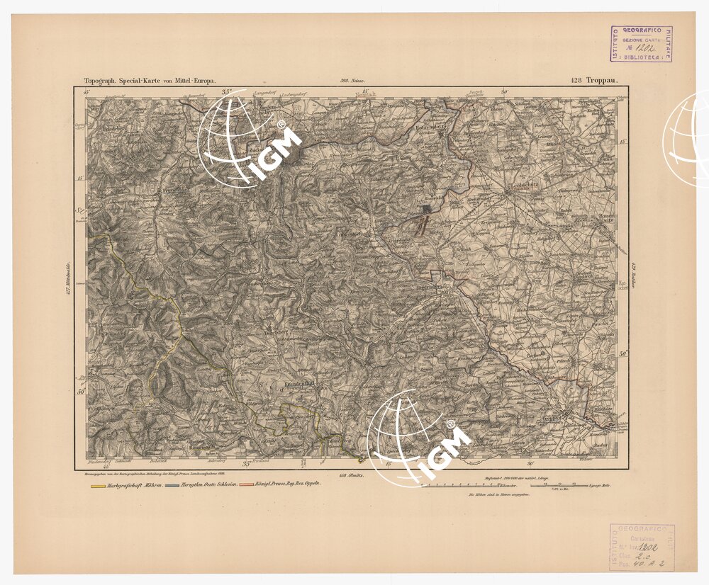 Autore Reymann, luogo di edizione Berlino. Rappresentazione orografica a tratteggio. Tipo in nero colorato a mano.