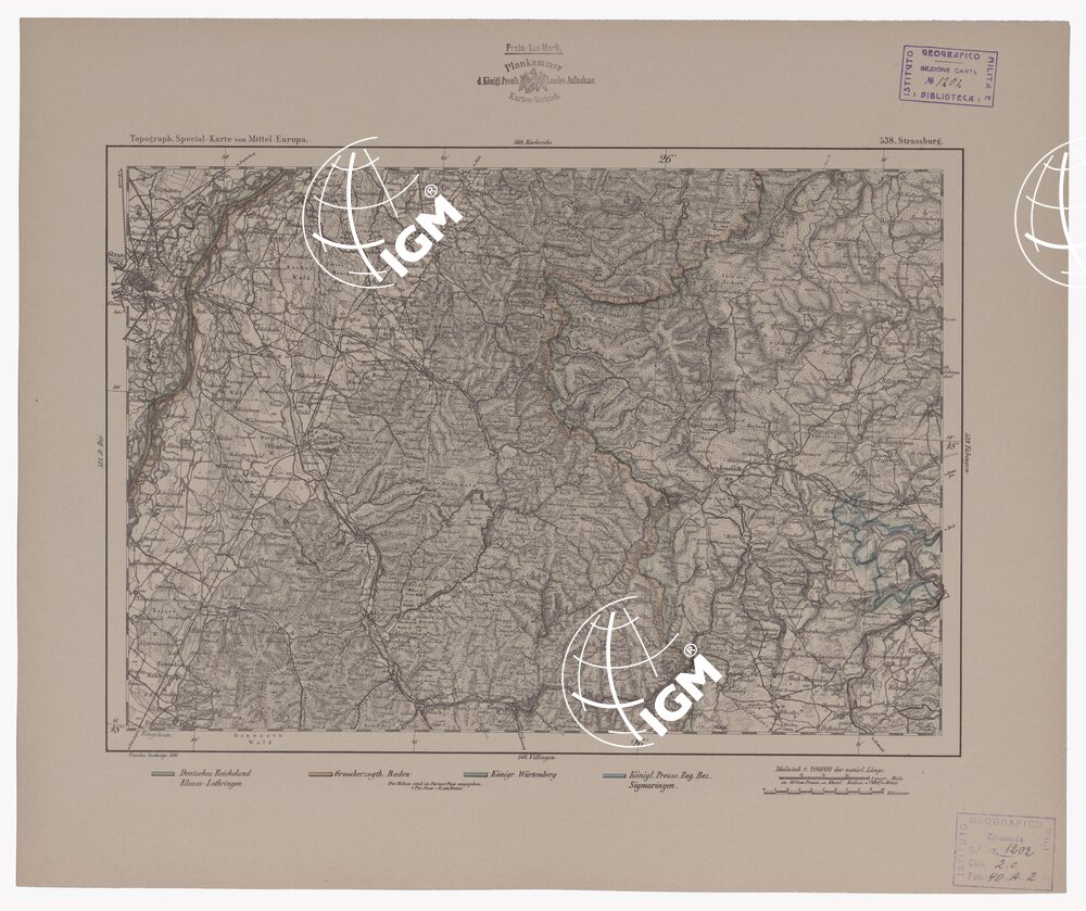 Autore Reymann, luogo di edizione Berlino. Rappresentazione orografica a tratteggio. Tipo in nero colorato a mano.