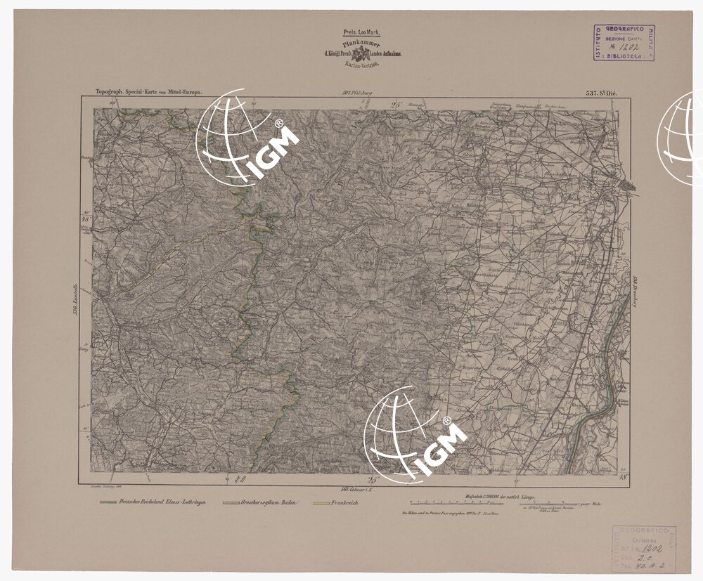 Autore Reymann, luogo di edizione Berlino. Rappresentazione orografica a tratteggio. Tipo in nero colorato a mano.