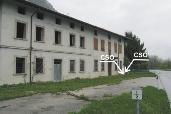 | Contrassegni | [{"simbolo_contrassegno":"P5","materializzazione":"(CSO) – Pozzetto di IV Categoria posto alla base della facciata, a 0,65 metri dallo spigolo di destra."},{"simbolo_contrassegno":"B1","materializzazione":"(CSO') – Bullone infisso presso lo spigolo di destra della facciata."}] |