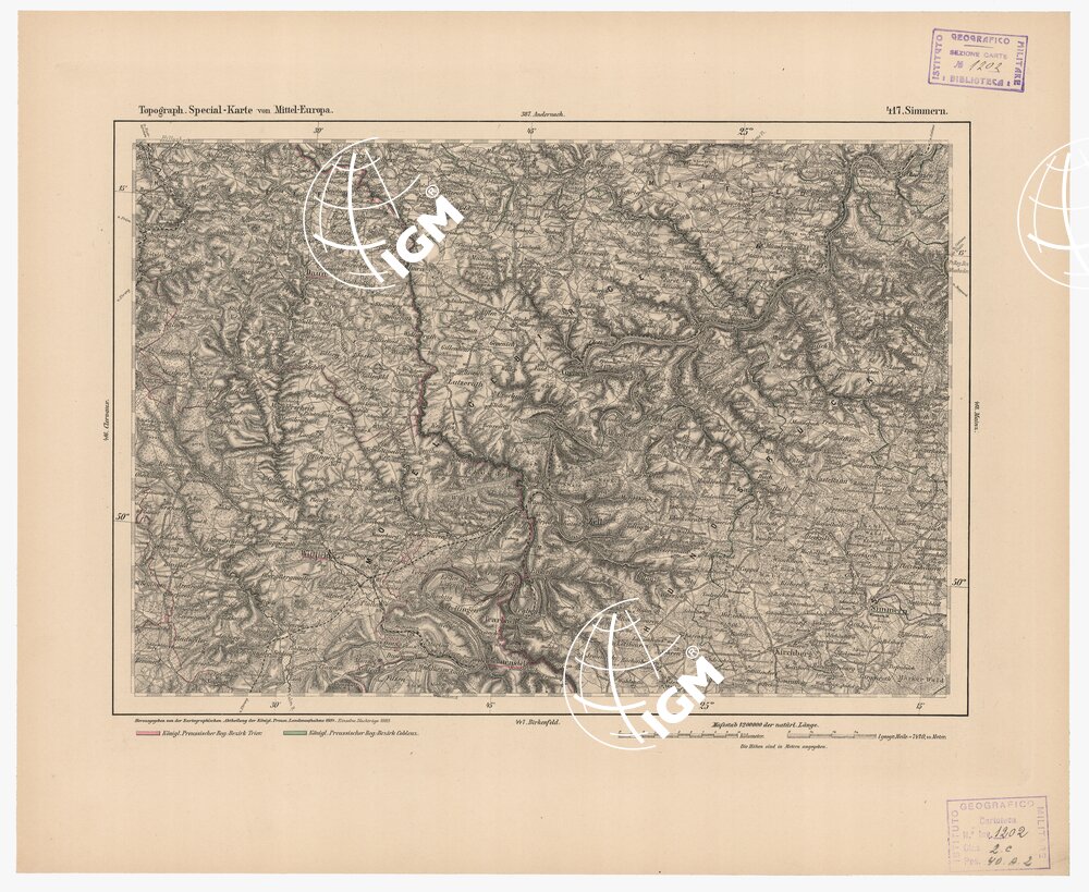 Autore Reymann, luogo di edizione Berlino. Rappresentazione orografica a tratteggio. Tipo in nero colorato a mano.
