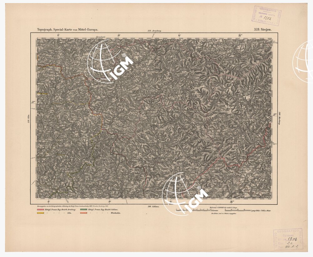 Autore Reymann, luogo di edizione Berlino. Rappresentazione orografica a tratteggio. Tipo in nero colorato a mano.