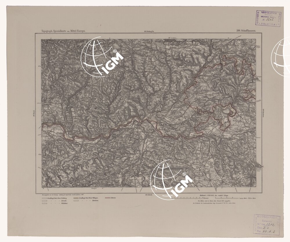 Autore Reymann, luogo di edizione Berlino. Rappresentazione orografica a tratteggio. Tipo in nero colorato a mano.