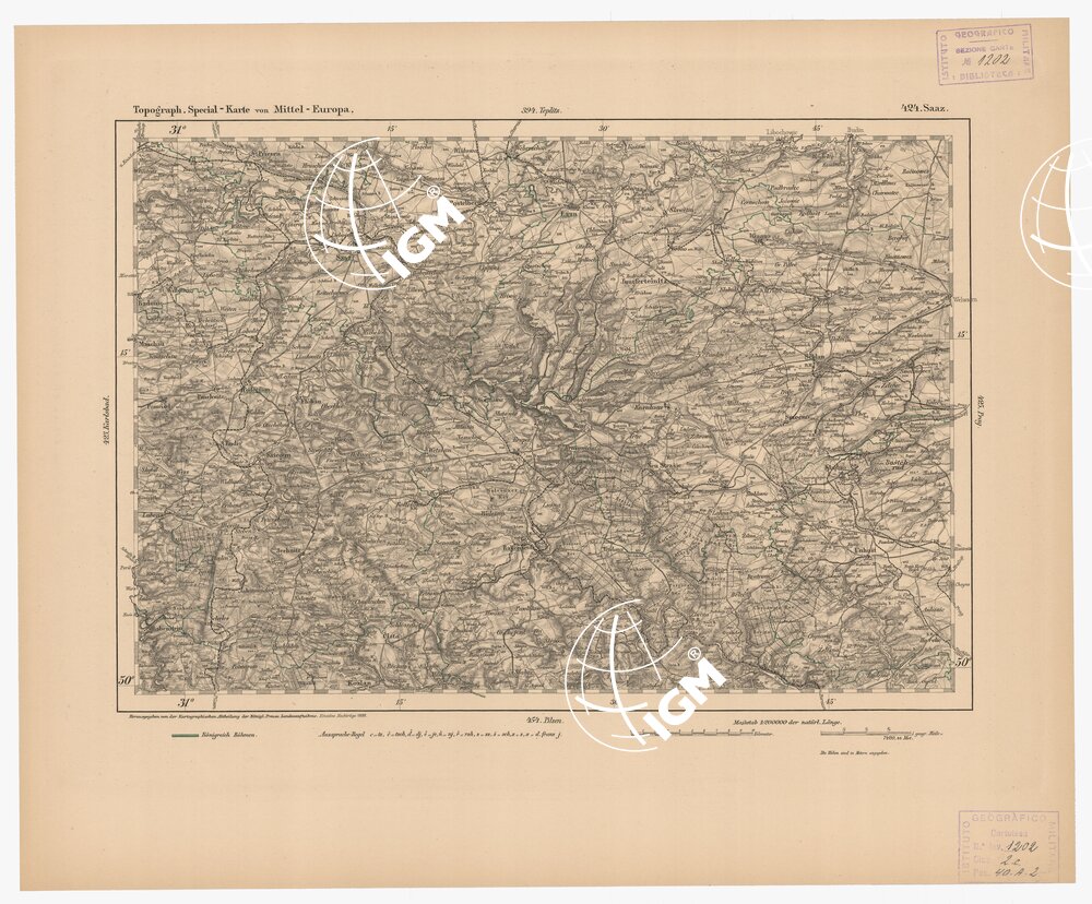 Autore Reymann, luogo di edizione Berlino. Rappresentazione orografica a tratteggio. Tipo in nero colorato a mano.