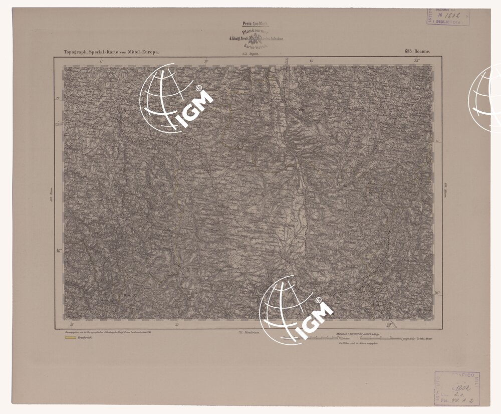 Autore Reymann, luogo di edizione Berlino. Rappresentazione orografica a tratteggio. Tipo in nero colorato a mano.