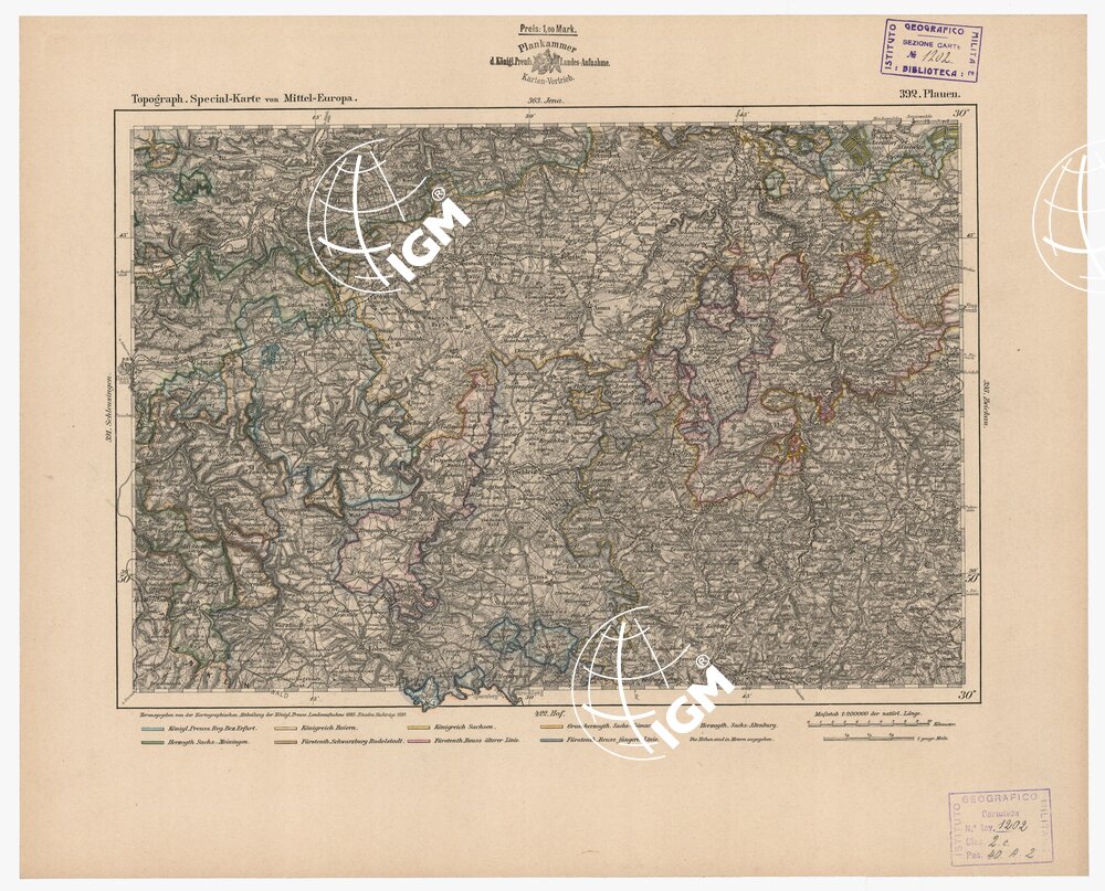 Autore Reymann, luogo di edizione Berlino. Rappresentazione orografica a tratteggio. Tipo in nero colorato a mano.