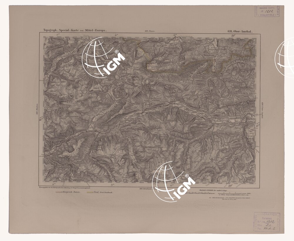 Autore Reymann, luogo di edizione Berlino. Rappresentazione orografica a tratteggio. Tipo in nero colorato a mano.