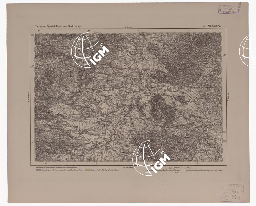 Autore Reymann, luogo di edizione Berlino. Rappresentazione orografica a tratteggio. Tipo in nero colorato a mano.