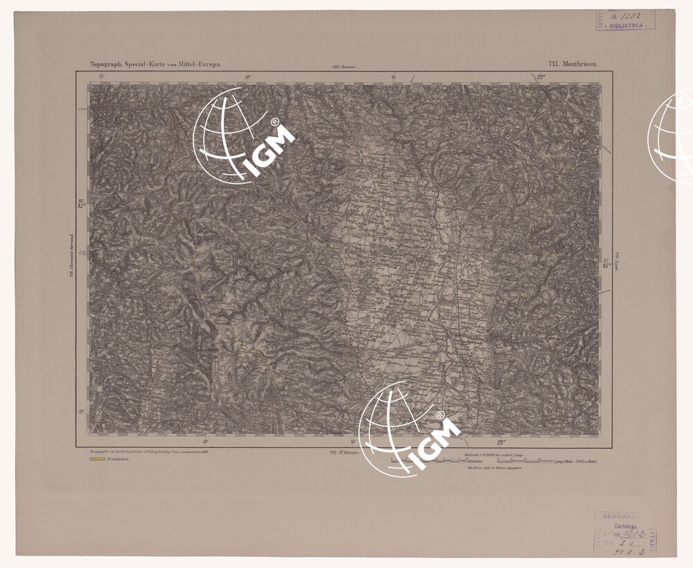 Autore Reymann, luogo di edizione Berlino. Rappresentazione orografica a tratteggio. Tipo in nero colorato a mano.
