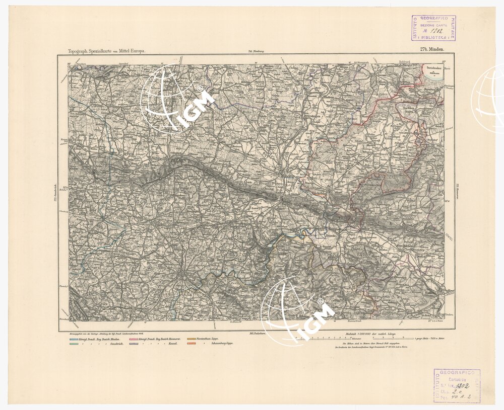 Autore Reymann, luogo di edizione Berlino. Rappresentazione orografica a tratteggio. Tipo in nero colorato a mano.