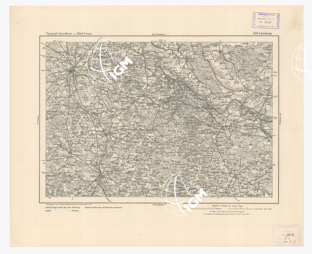 Autore Reymann, luogo di edizione Berlino. Rappresentazione orografica a tratteggio. Tipo in nero colorato a mano.